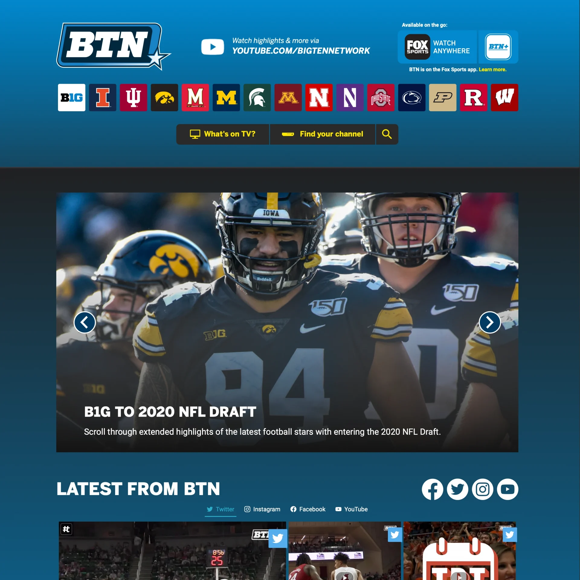 Due to changing business goals, BTN transitioned from a news site to a social media and television focus. We overhauled the interface to make it easier to find shows and news related to each team - from many sources.